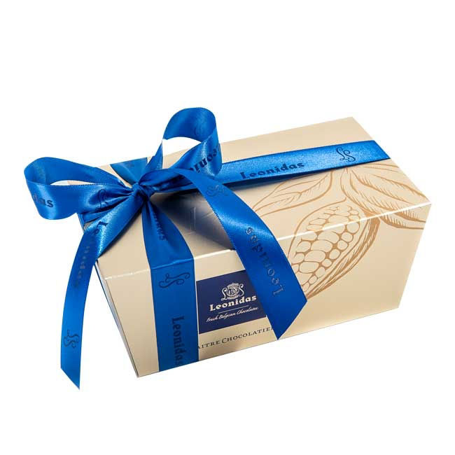 Ποικιλία από 250 γρ. σοκολατάκια Leonidas γάλακτος με γέμιση από πραλίνα, κρέμα βουτύρου, ganache, καραμέλας, λικέρ, συσκευασμένα στο κλασικό κουτί μπαλοτέν Leonidas!
