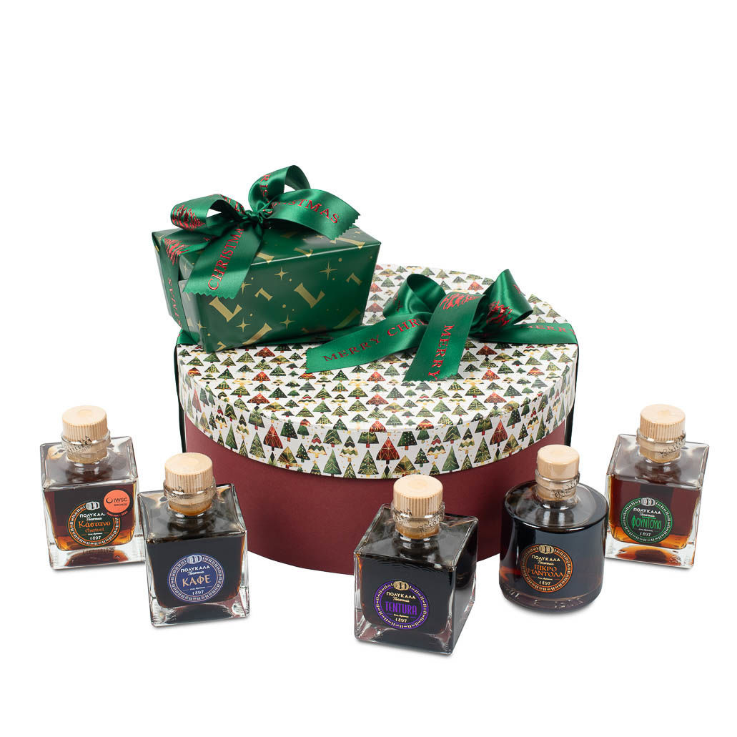 Χάρτινη Χριστουγεννιάτικη καπελιέρα Christmas Story με λικέρ Πολυκαλά και σοκολατάκια Leonidas