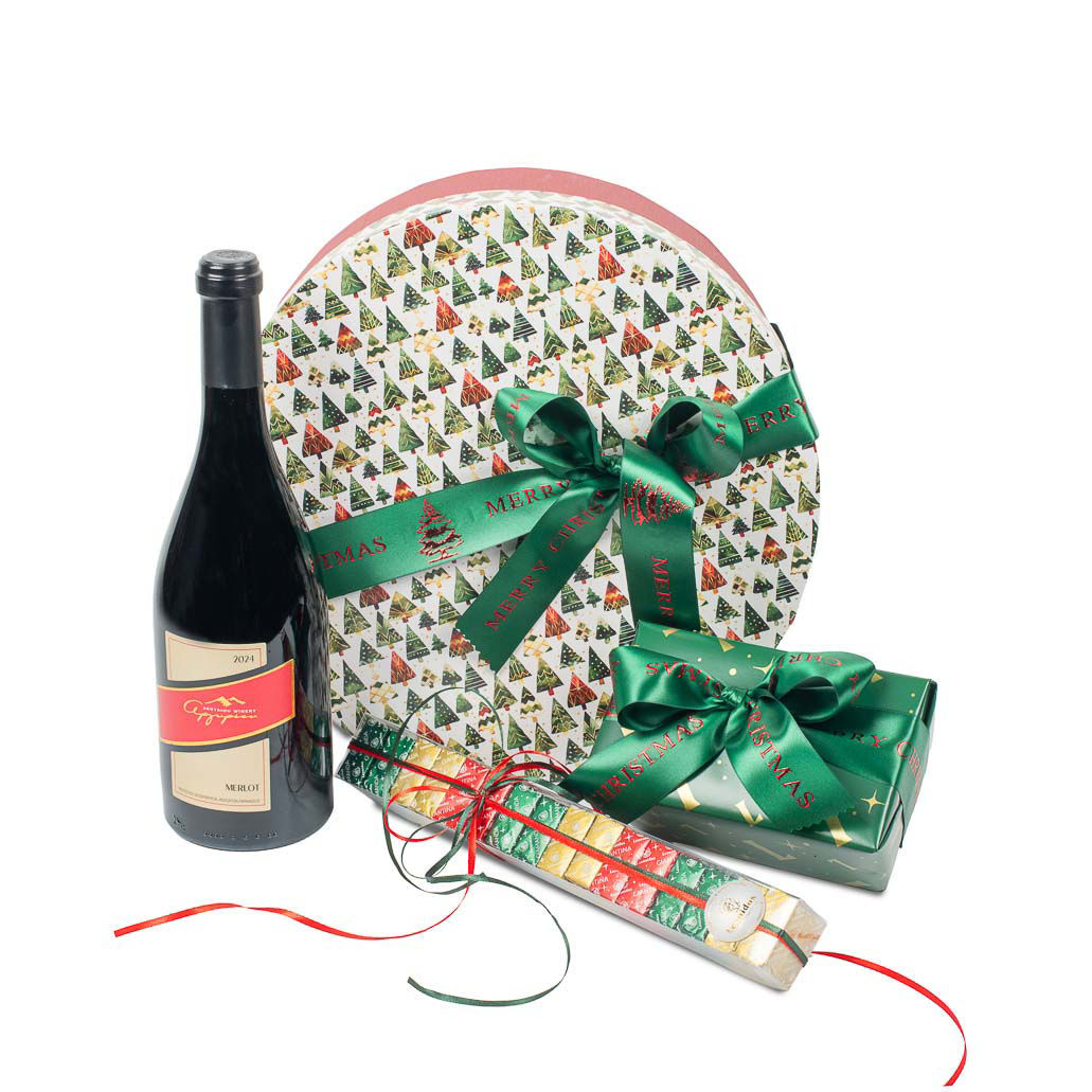 Χάρτινη Χριστουγεννιάτικη καπελιέρα Christmas Story με λικέρ Πολυκαλά και σοκολατάκια Leonidas
