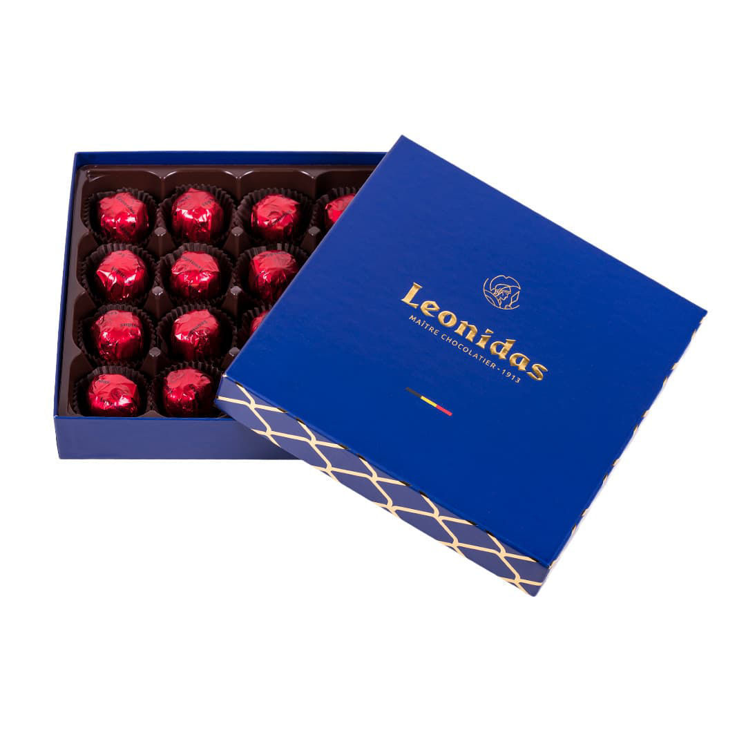 Χάρτινο μπλέ τετράγωνο κουτί Heritage M με 290 γρ σοκολατάκια - 16 σοκολατάκια - CHERRY Leonidas