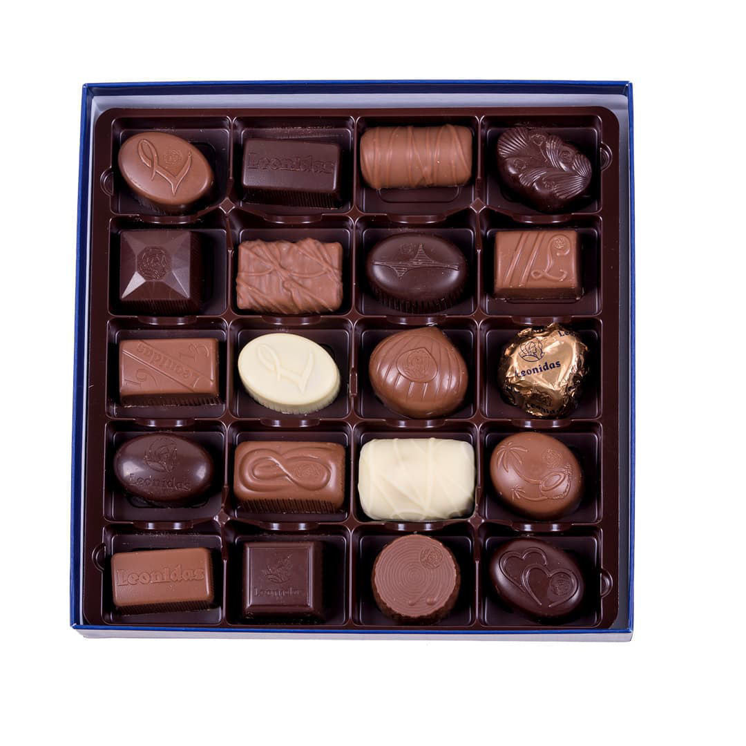 Χάρτινο μπλέ τετράγωνο κουτί Heritage M με 320 γρ 20 τεμάχια σοκολατάκια Leonidas