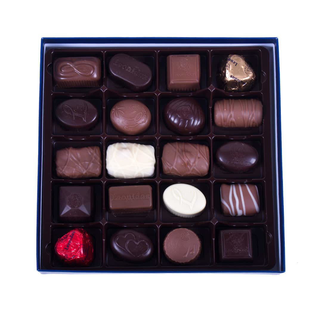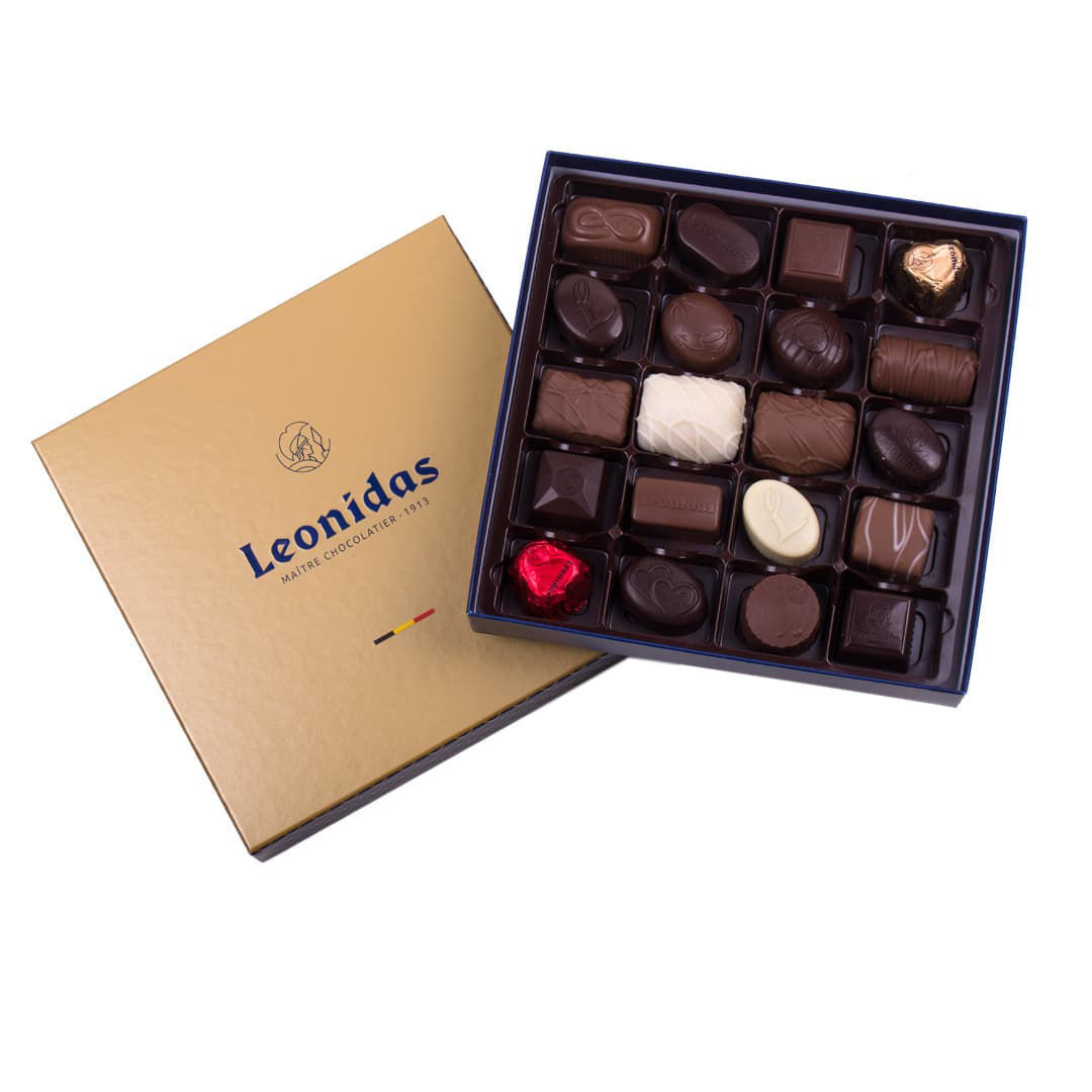 Χάρτινο χρυσό τετράγωνο κουτί Heritage M με 320 γρ. ποικιλία σοκολατάκια Leonidas