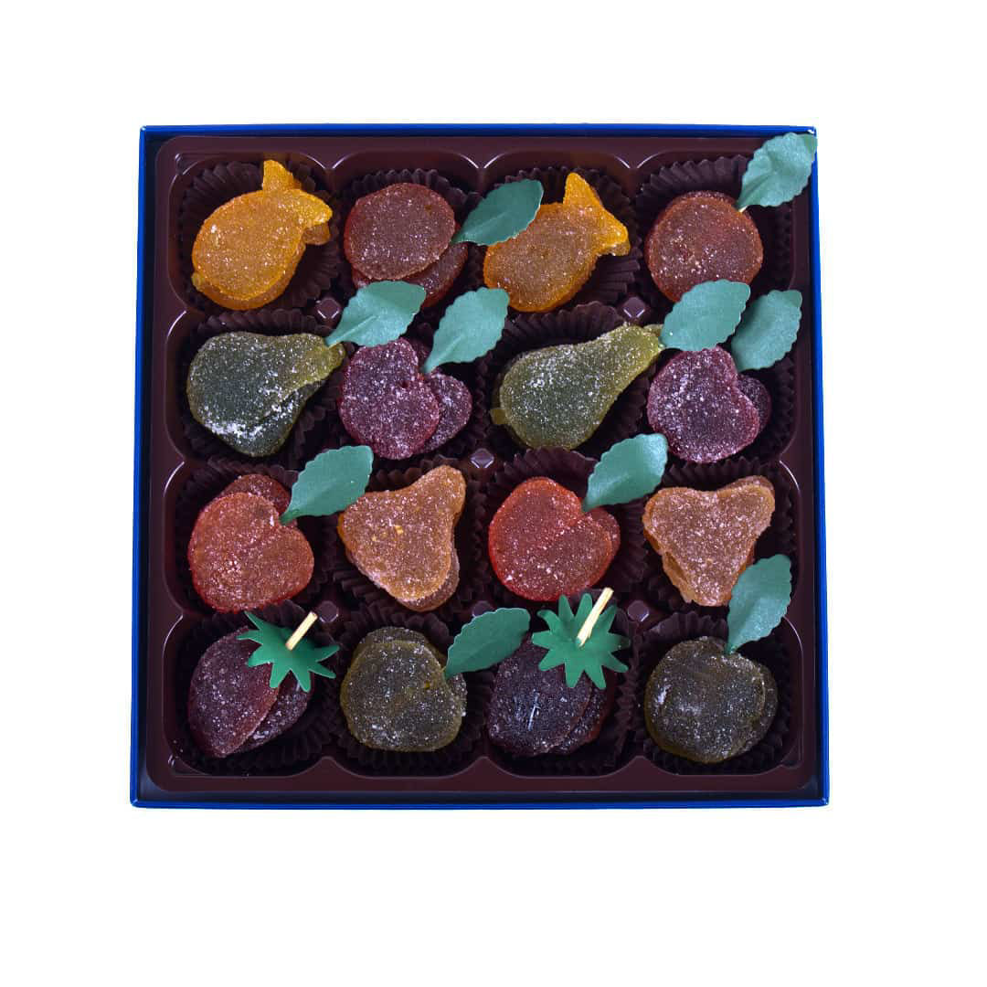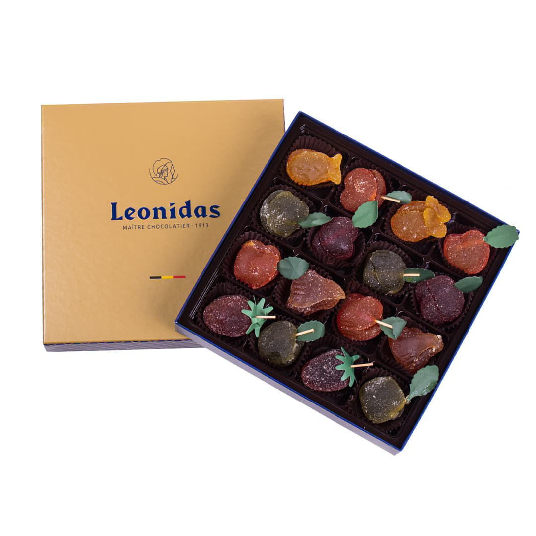 Χάρτινο χρυσό τετράγωνο κουτί Heritage M με 430 γρ.pates de fruit (ζελεδάκια φρούτων) Leonidas