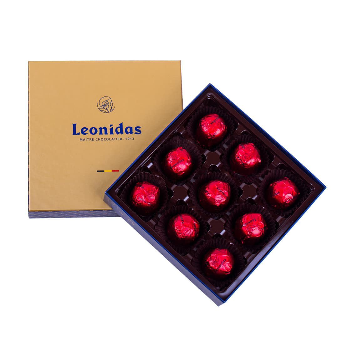 Χάρτινο χρυσό τετράγωνο κουτί Heritage S με 160 γρ σοκολατάκια cerise Leonidas