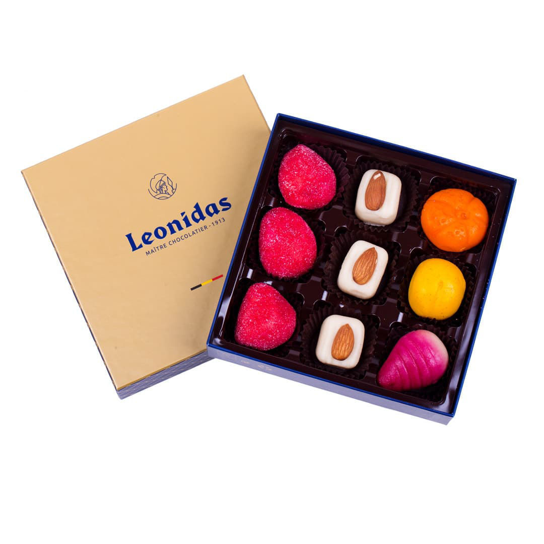 Χάρτινο χρυσό τετράγωνο κουτί Heritage S με 220 γρ. αμυγδαλόπαστα (marzipan) Leonidas