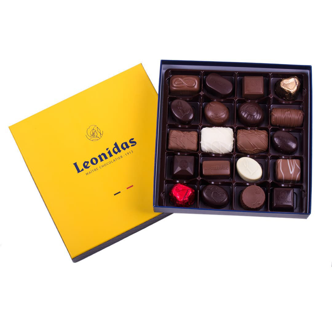 Χάρτινο κίτρινο τετράγωνο κουτί Heritage M με 320 γρ. ποικιλία σοκολατάκια Leonidas