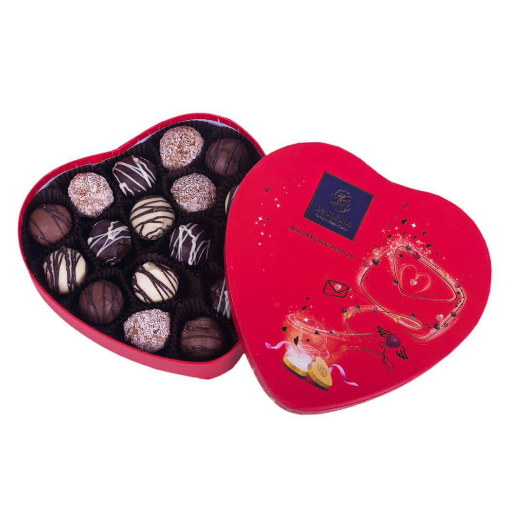 Χάρτινο κουτί Αγίου Βαλεντίνου σε σχήμα καρδιάς με 250 γρ σοκολατάκια τρουφάκια (perles) Leonidas