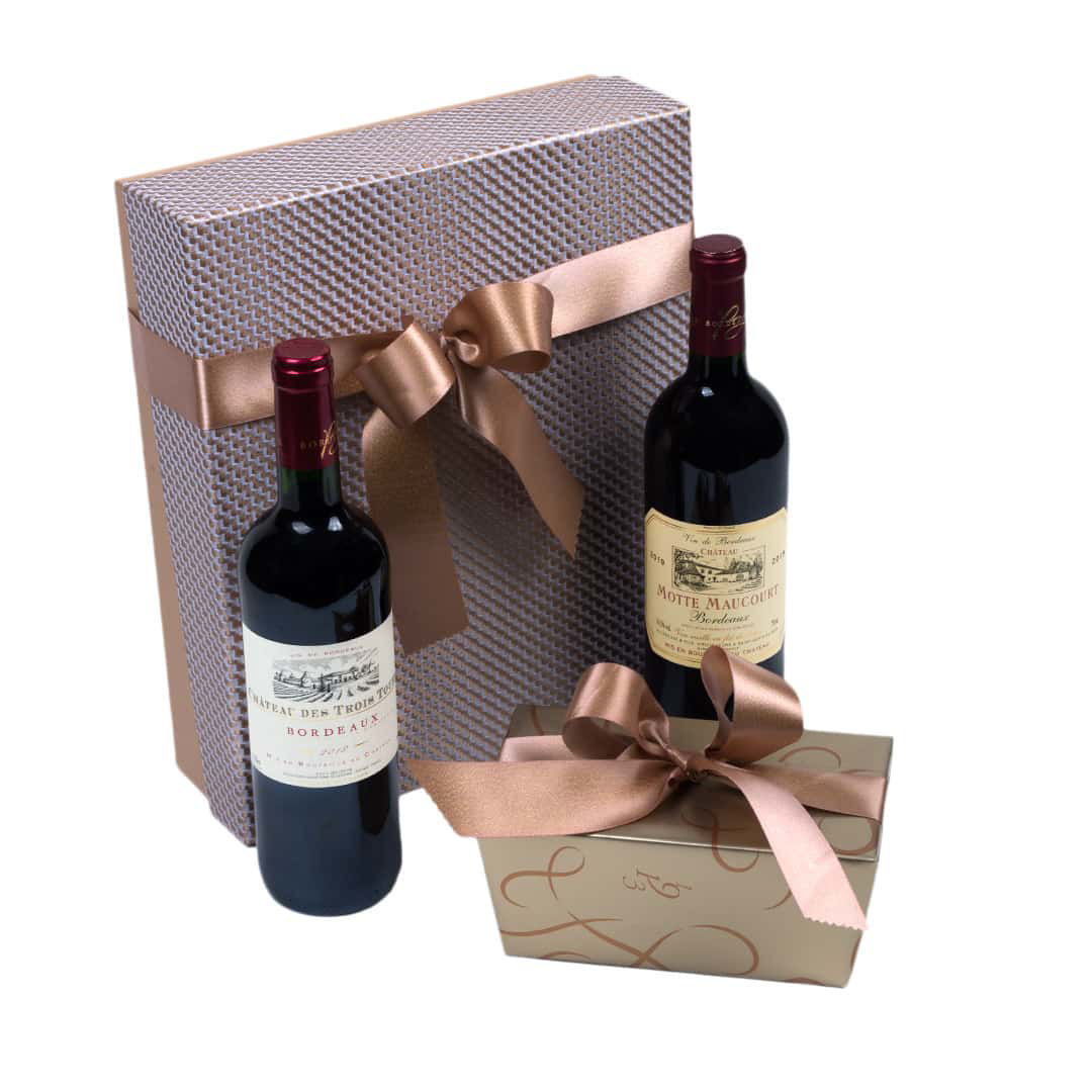 Χάρτινο κουτί με αμπαλάζ, σοκολατάκια Leonidas & Γαλλικά κόκκινα κρασιά