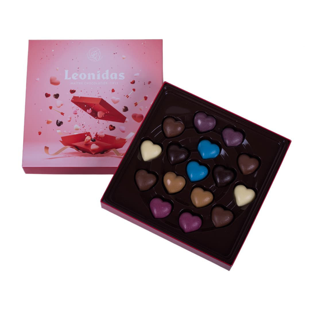 Χάρτινο τετράγωνο κουτί Αγίου Βαλεντίνου με 180 γρ. σοκολατένιες καρδούλες Leonidas