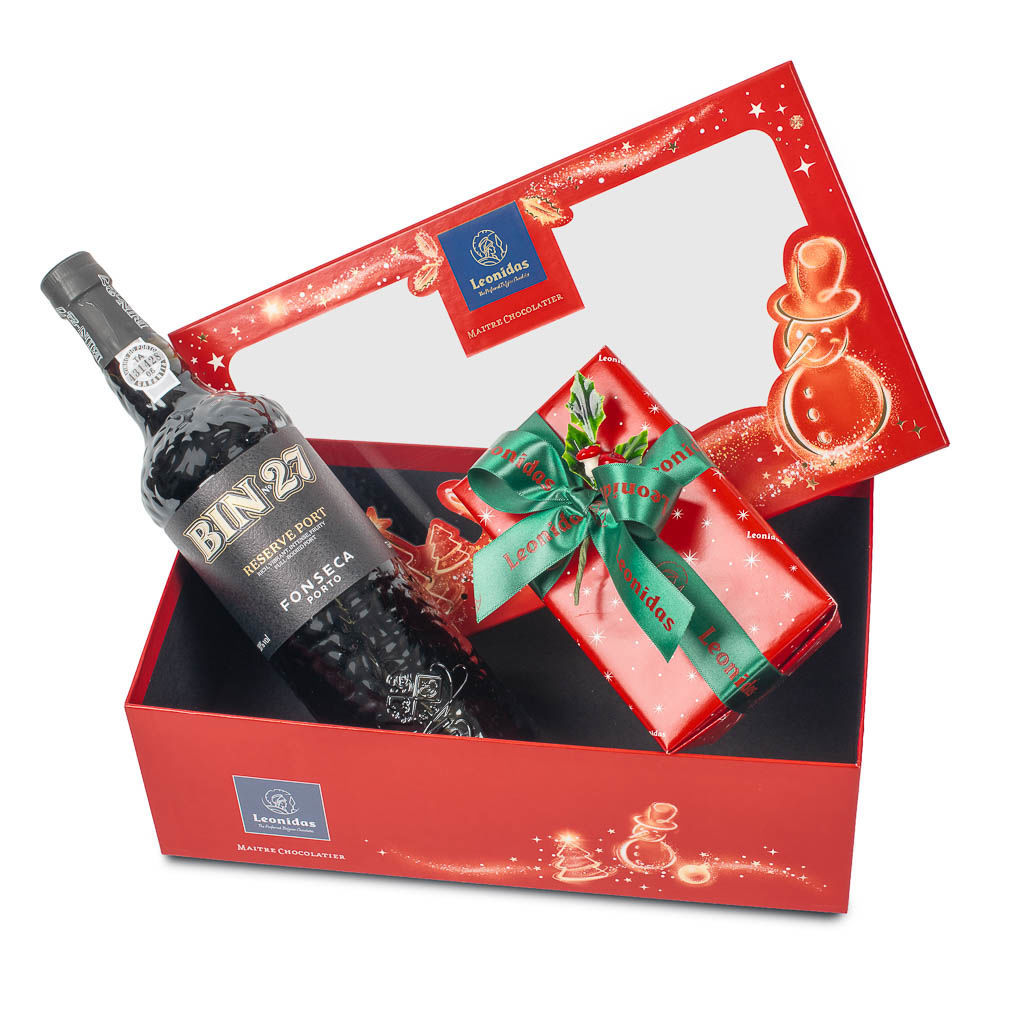 Χριστουγεννιάτικο κουτί Leonidas με 500 γρ σοκολατάκια και Fonseca Porto Bin No 27 Reserve