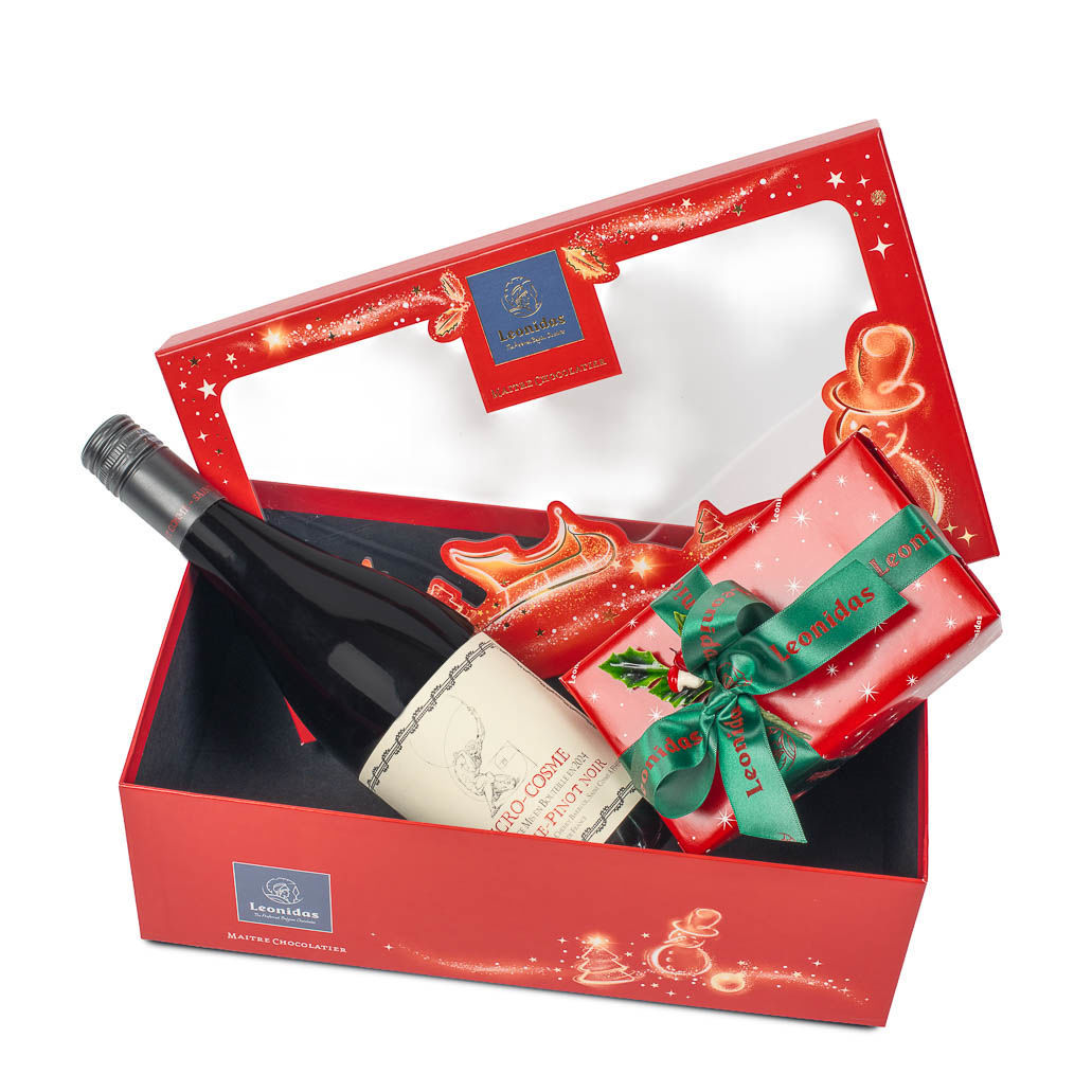 Χριστουγεννιάτικο κουτί Leonidas με 500 γρ σοκολατάκια και κόκκινο κρασί Γαλλίας St Cosme Micro-cosme