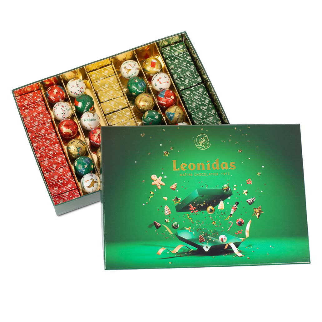 Χριστουγεννιάτικο πράσινο χάρτινο κουτί παραλληλόγραμμο με 620 γρ. σοκολατάκια Leonidas