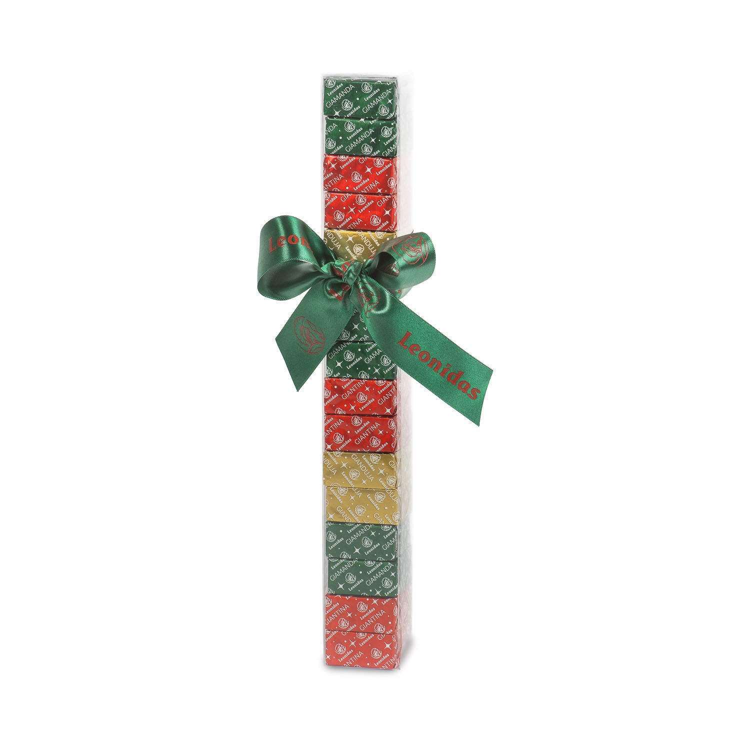 Κομψό, απολαυστικό mini κουτάκι Leonidas με 2 πραλίνες Gianduja, εορταστική κορδέλα.