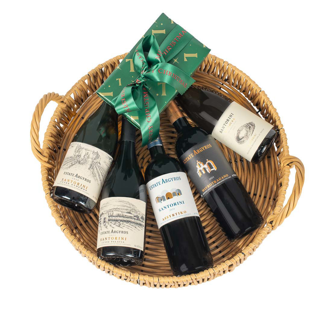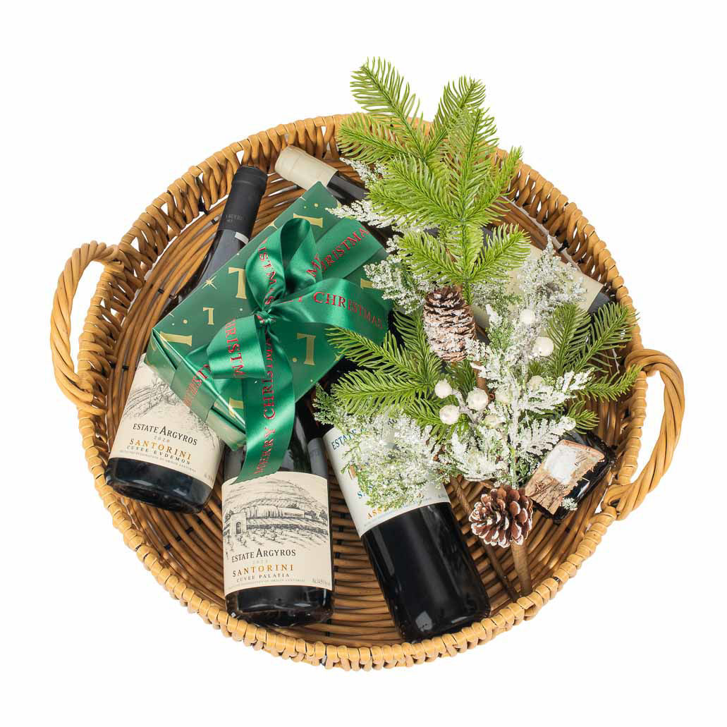 Δίσκος Polyrattan με Ελληνικά κρασιά και 1 κιλό σοκολατάκια Leonidas