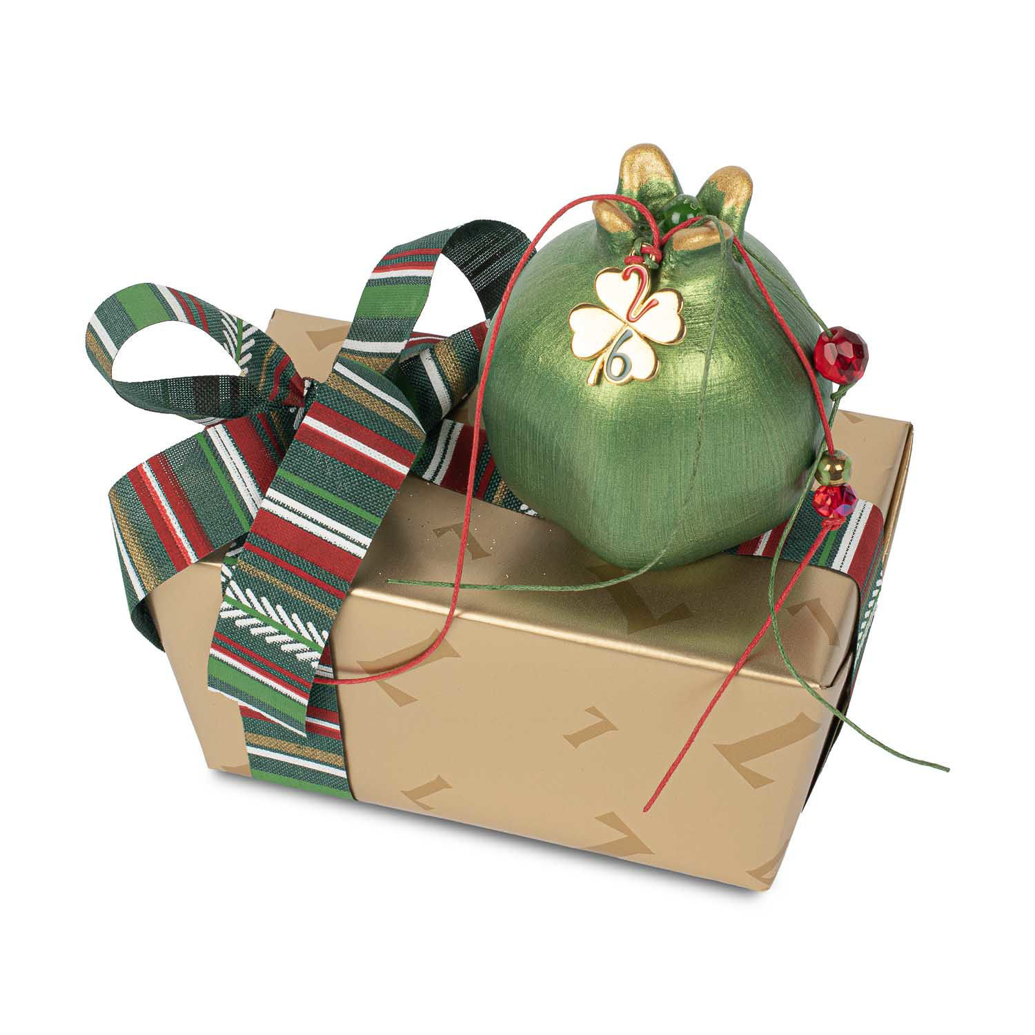 Πολυτελές, χρυσό κουτἰ με 36 σοκολατάκια με συλλεκτικό, χριστουγεννιάτικο περιτύλιγμα από τις πιο διάσημες πραλίνες: Gianduja (σκέτη πραλίνα φουντουκιού), Giantina (πραλίνα με κομματάκια τραγανού μπισκότου), Giamanda (πραλίνα με ψιλοκομμένο αμύγδαλο Καλιφόρνιας)