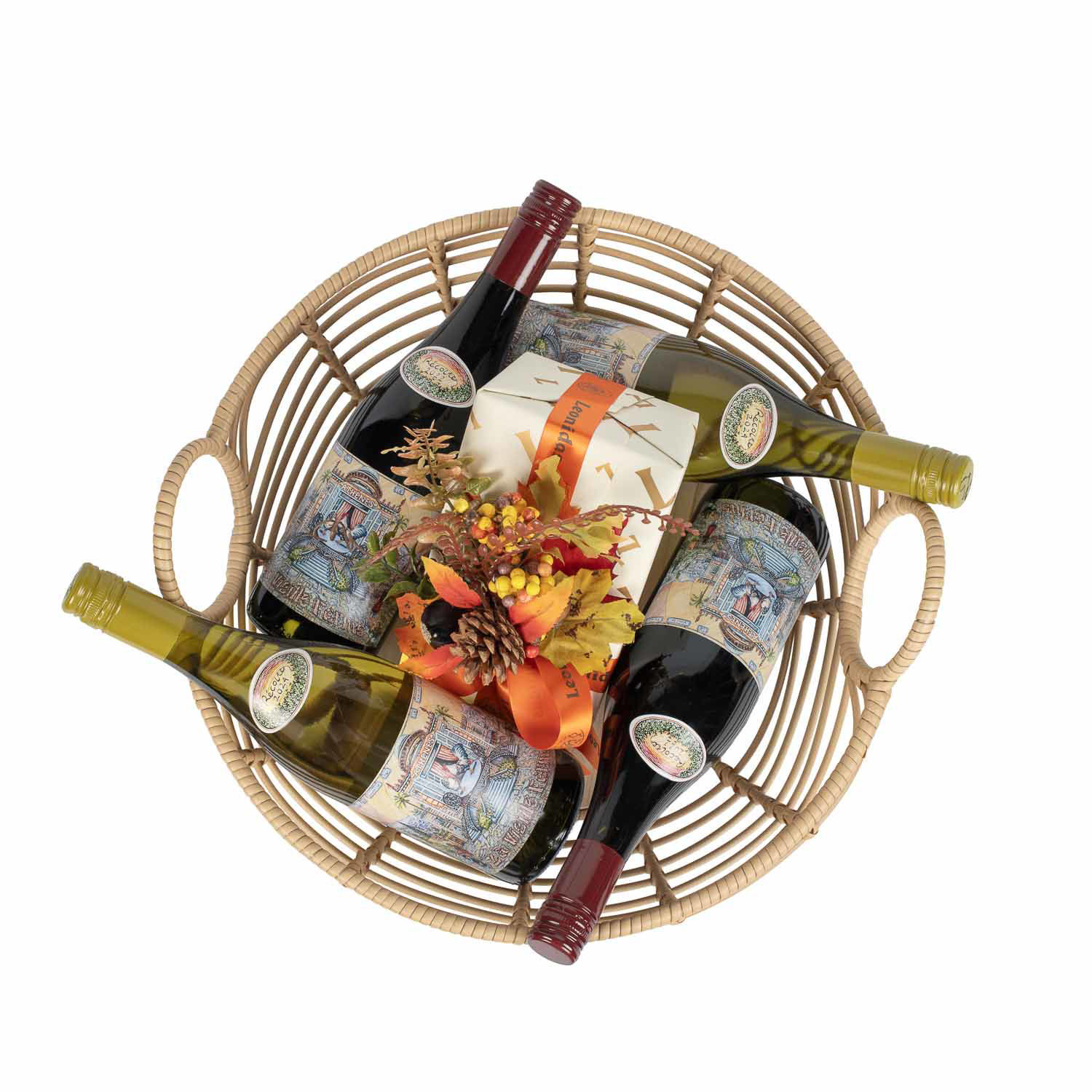 Καλαθι με αμπαλαζ με Γαλλικα κρασιά και σοκολατάκια Leonidas La Vieille Ferme