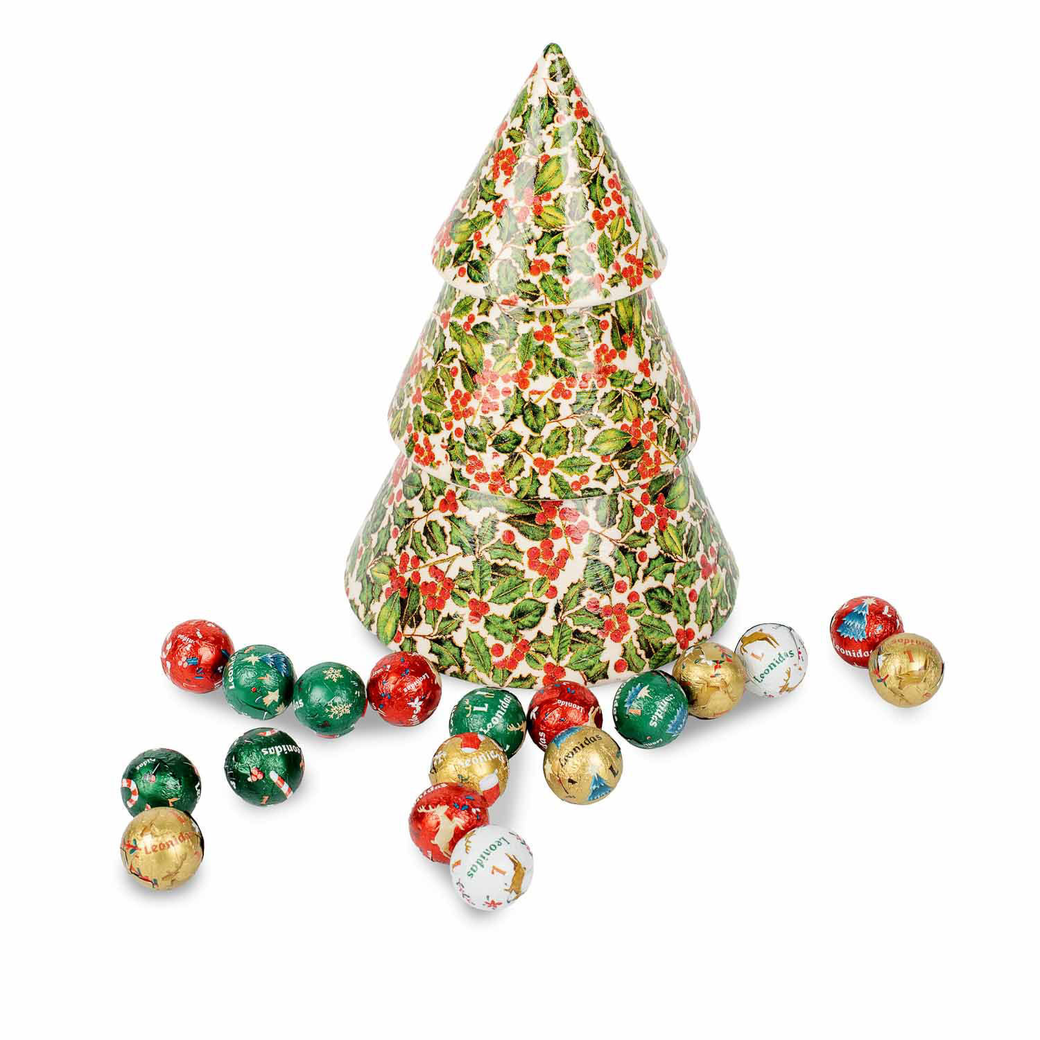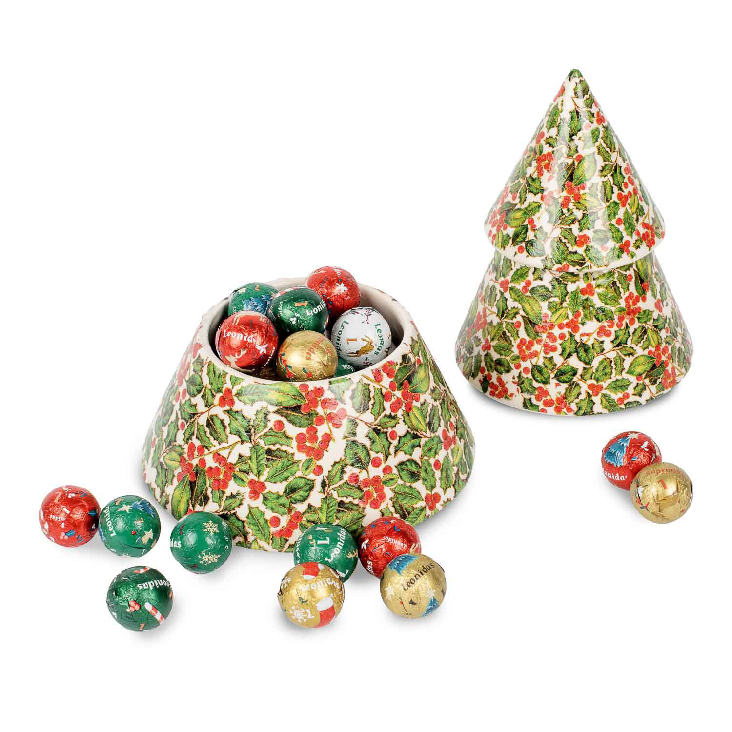 Κεραμικό διακοσμητικό σε σχήμα χριστουγεννιάτικου δέντρου με 350 γρ. ποικιλία σοκολατένιες χριστουγεννιάτικες μπαλίτσες Leonidas