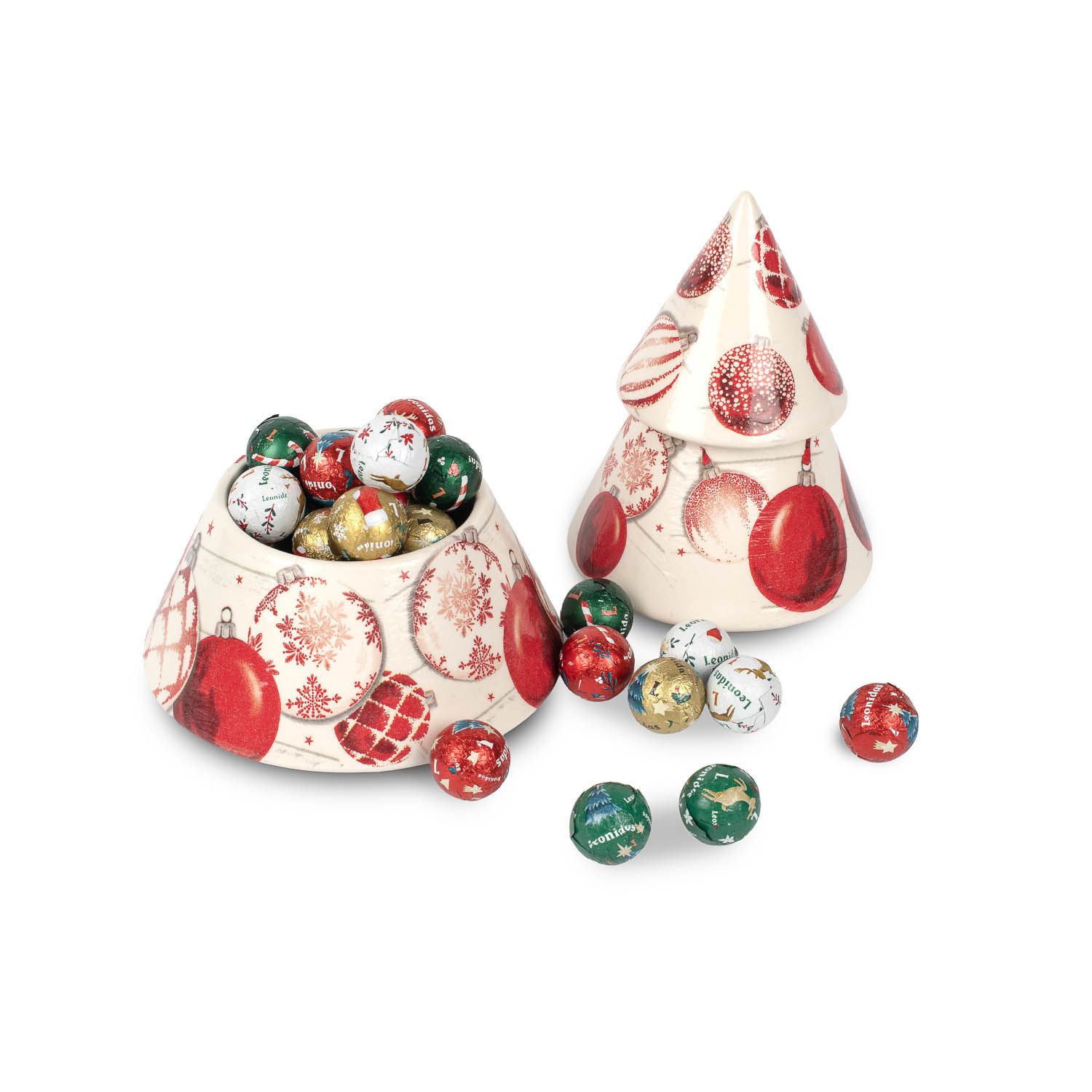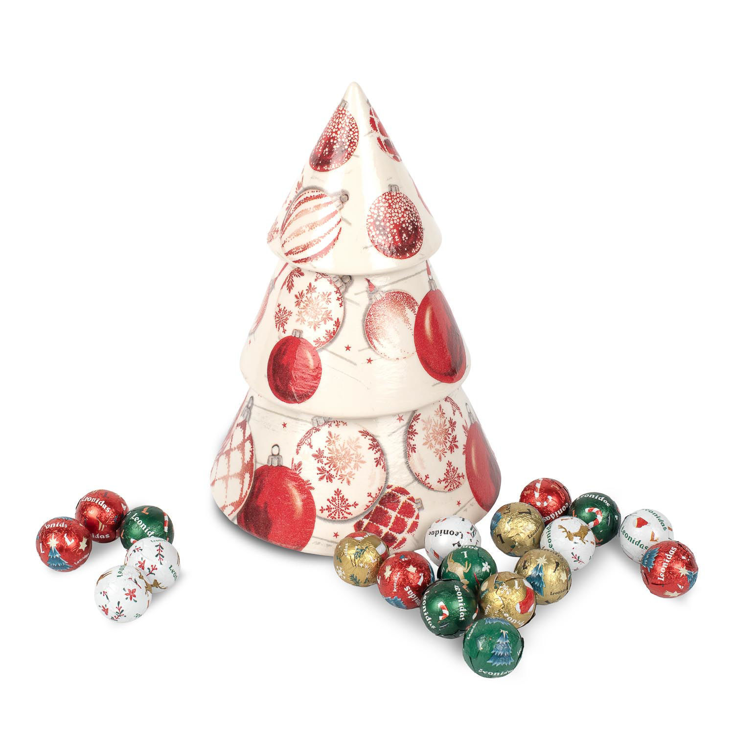 Κεραμικό διακοσμητικό σε σχήμα χριστουγεννιάτικου δέντρου με 350 γρ. ποικιλία σοκολατένιες χριστουγεννιάτικες μπαλίτσες Leonidas