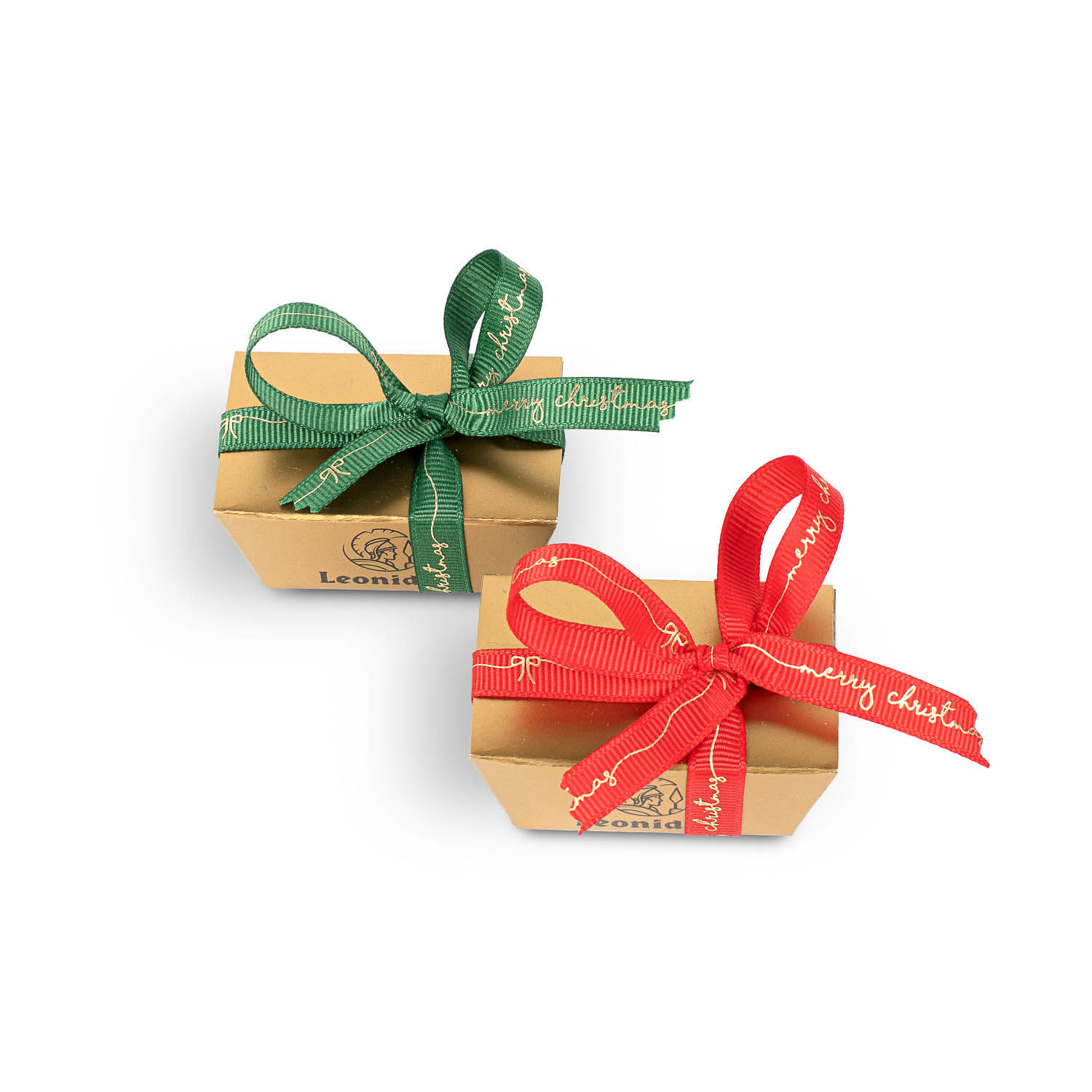 Κομψό, απολαυστικό mini κουτάκι Leonidas με 2 πραλίνες Gianduja, εορταστική κορδέλα.