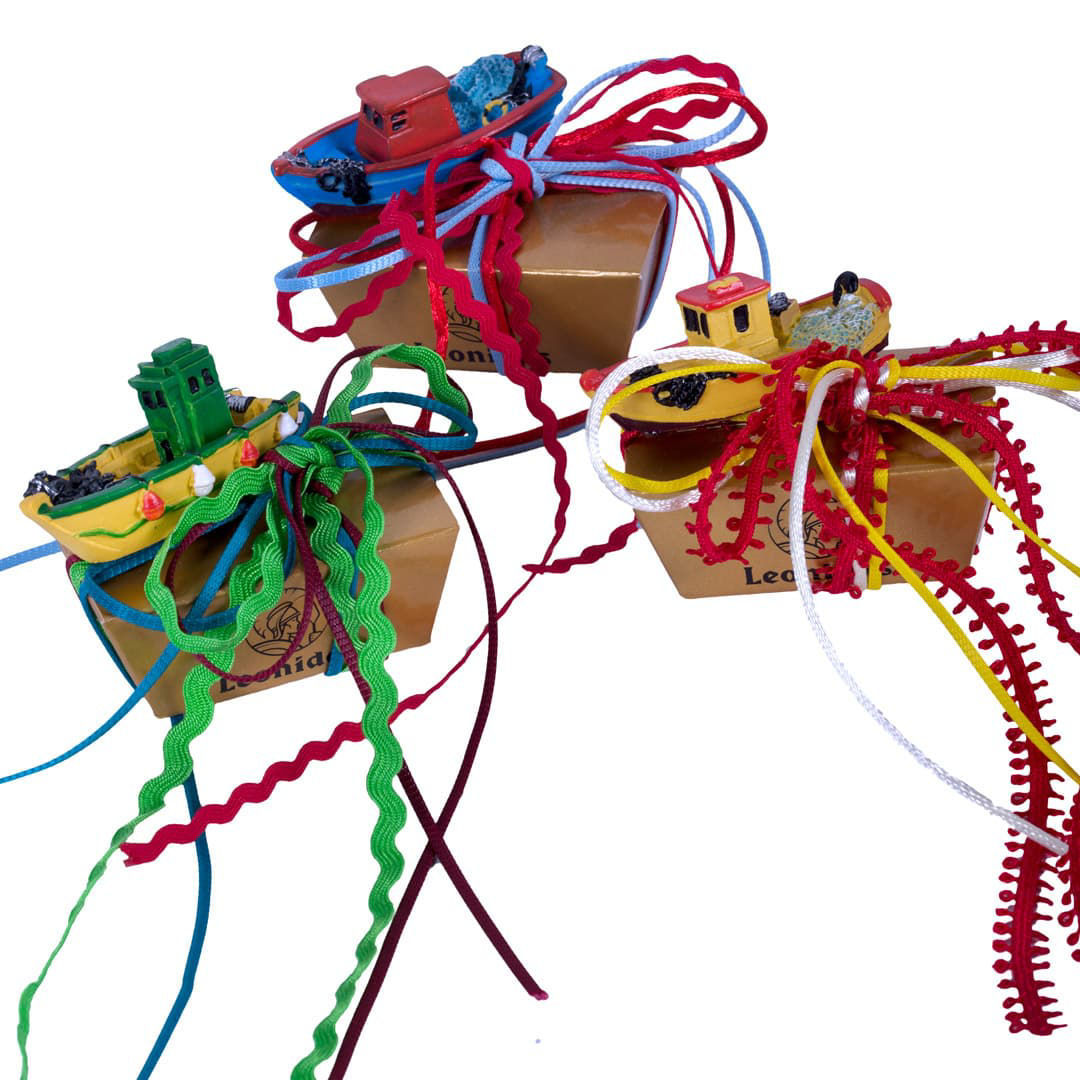 Κουτάκι μίνι με 2 σοκολατάκια gianduja και διακοσμητικό καραβάκι