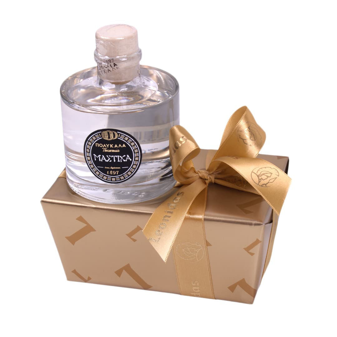 Κουτί με σοκολατάκια 750 γρ και λικέρ Πολυκαλά Μαστίχα