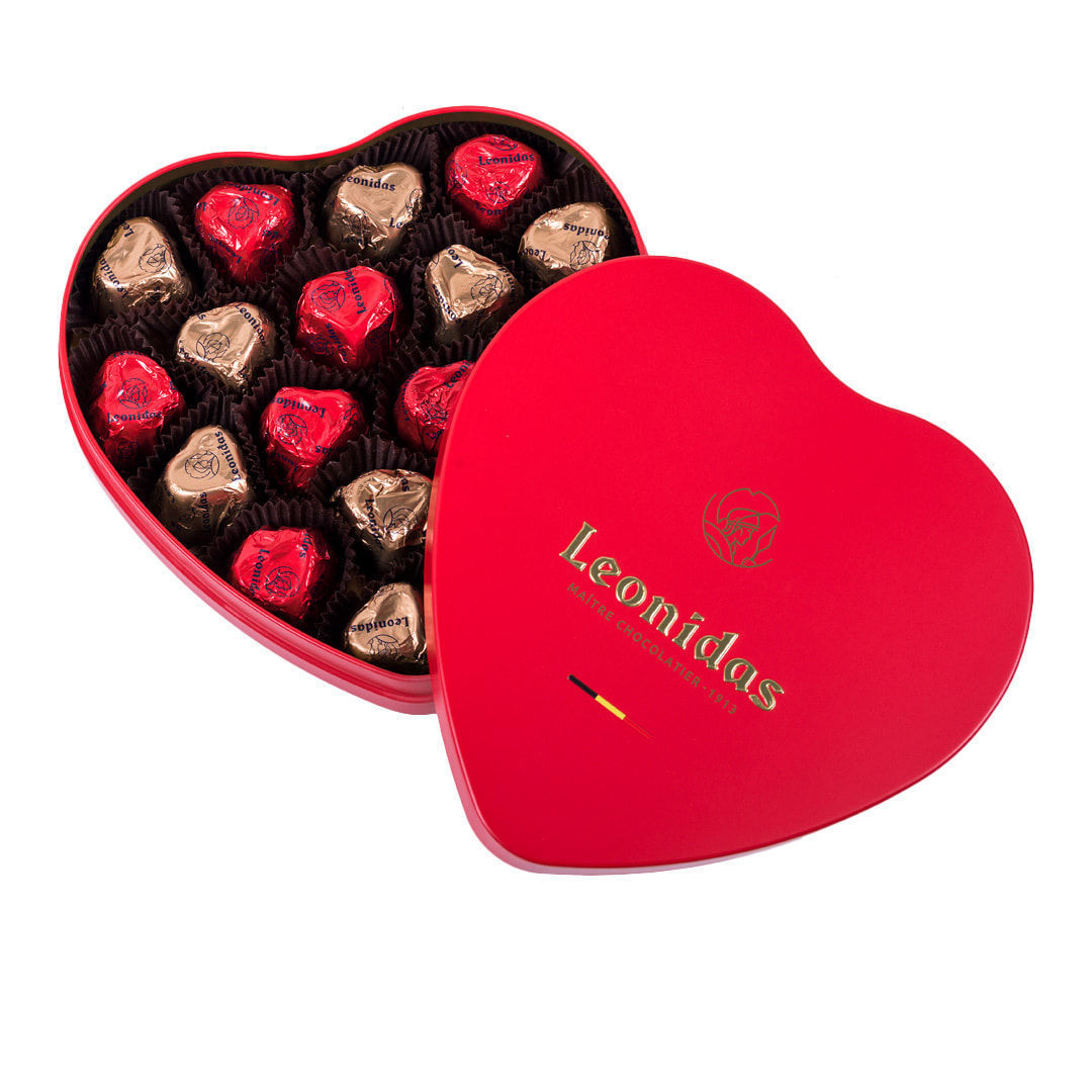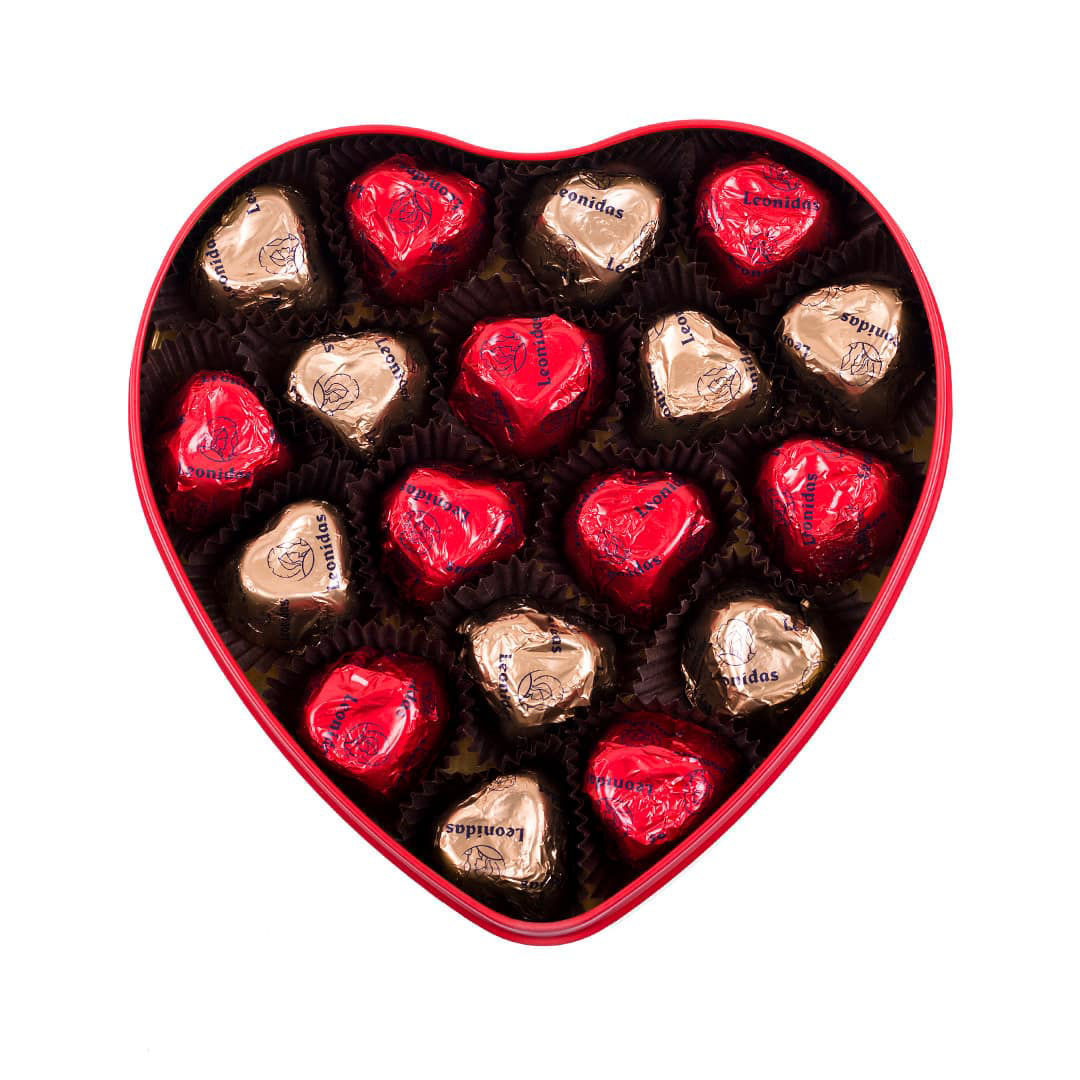 Μεταλλική καρδιά με 270 γρ σοκολατένιες τυλιγμένες καρδιές Leonidas