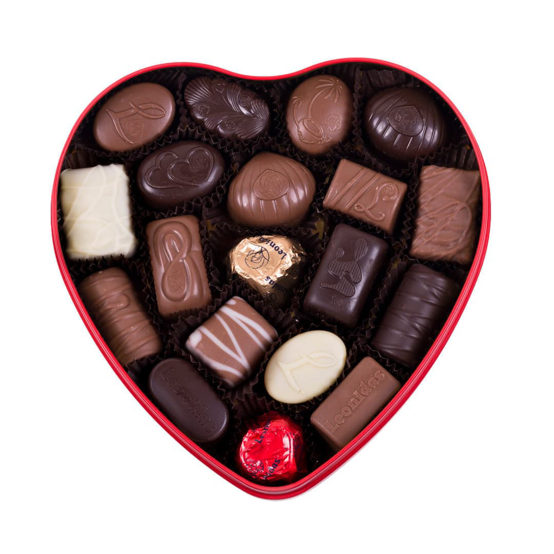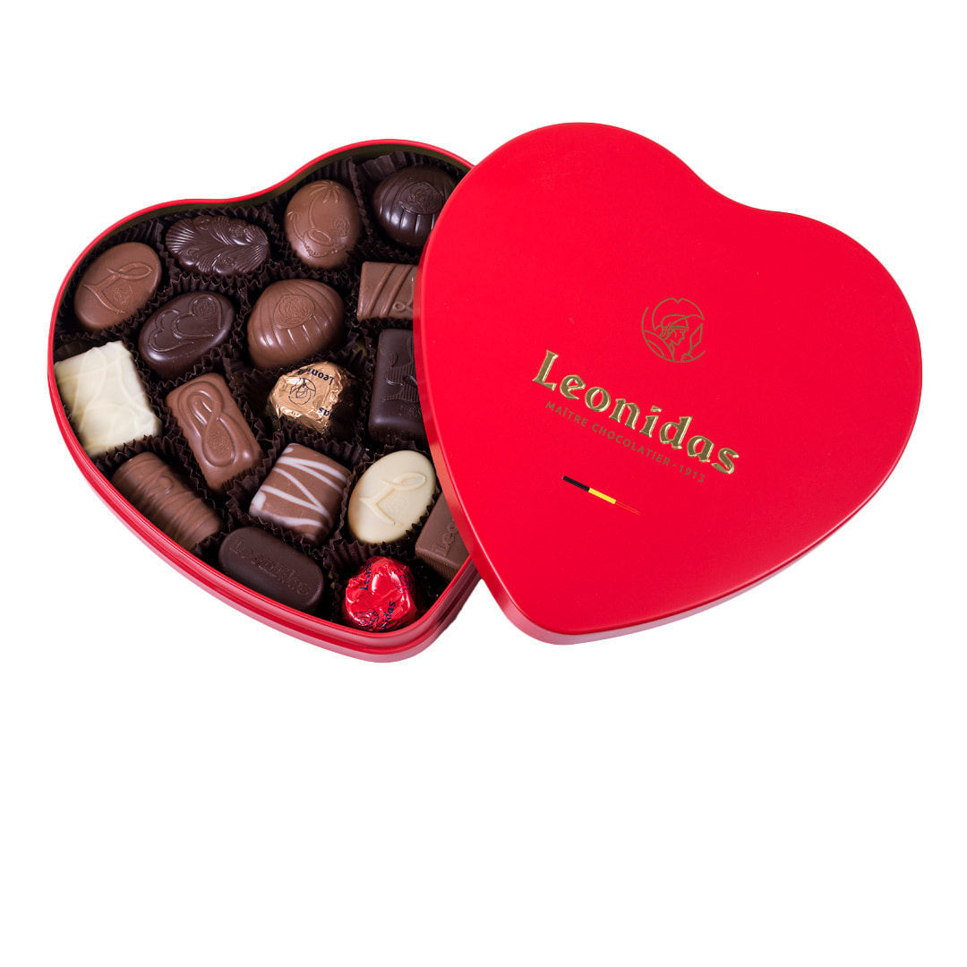 Μεταλλική καρδιά με 320 γρ. σοκολατάκια Leonidas
