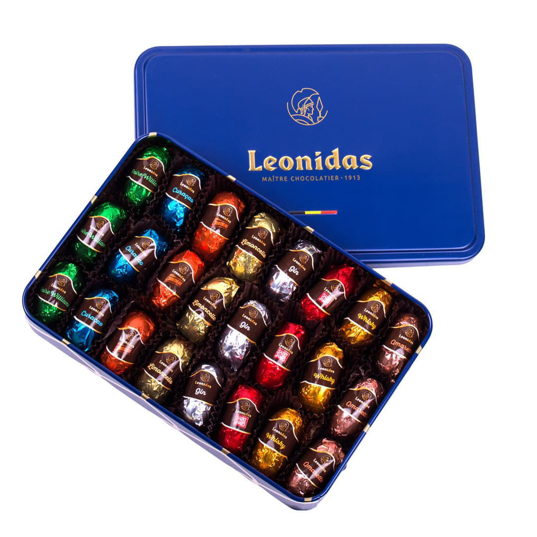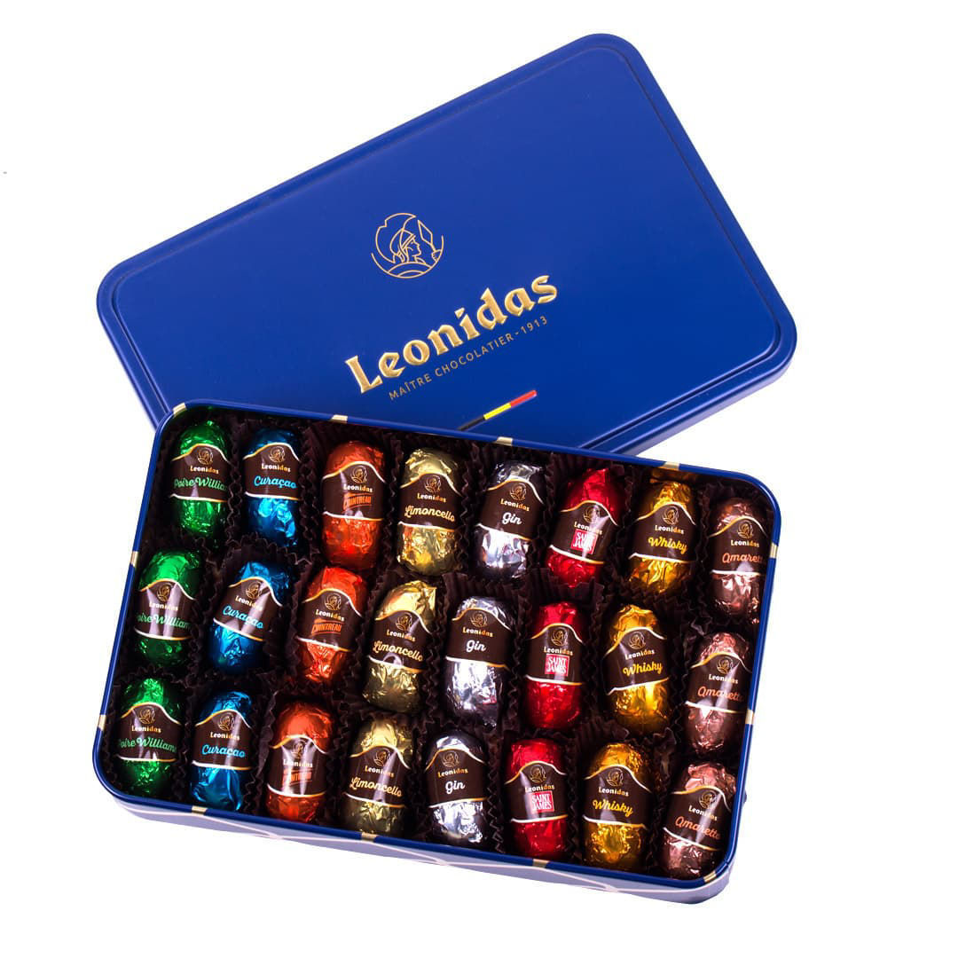 Μπαλοτέν με 250 γρ. σοκολατάκια Leonidas, με περίβλημα από σοκολάτα υγείας που στο εσωτερικό περιέχουν λικέρ σε 8 διαφορετικές γεύσεις: Amaretto, Cointreau, Limoncello, Gin, Saint James, Poire Williams, Whisky και Curacao!