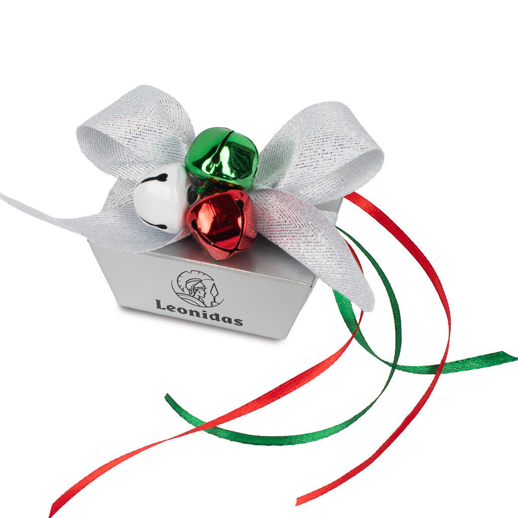 Κουτί μπαλοτέν με 500 γρ σοκολατένιες χριστουγεννιάτικες μπαλίτσες Leonidas σε 13 γεύσεις: dark praliné, milk salted caramel,milk sparkling praliné, milk hazelnuts paste, milk praliné biscuit, white praliné puffed rice. milk chocolate vanilla flavoured cream, white chocolate praline and hazelnuts, creme brulee dark, mont blanc chestnut dark, sparkling praline dark, browine milk, maringue lemon white.