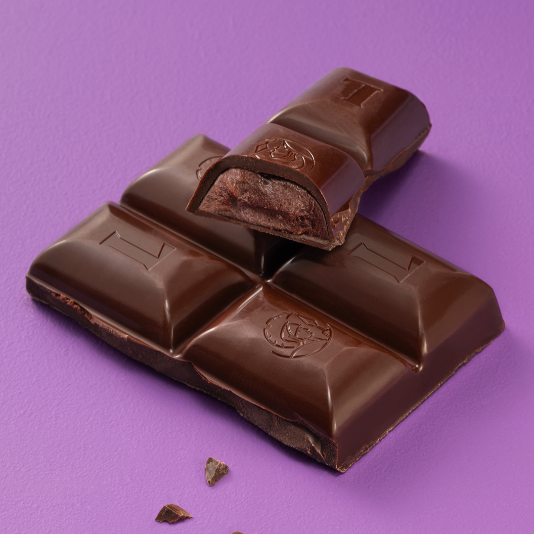 Dark chocolate tablet filled with an intense dark chocolate ganache