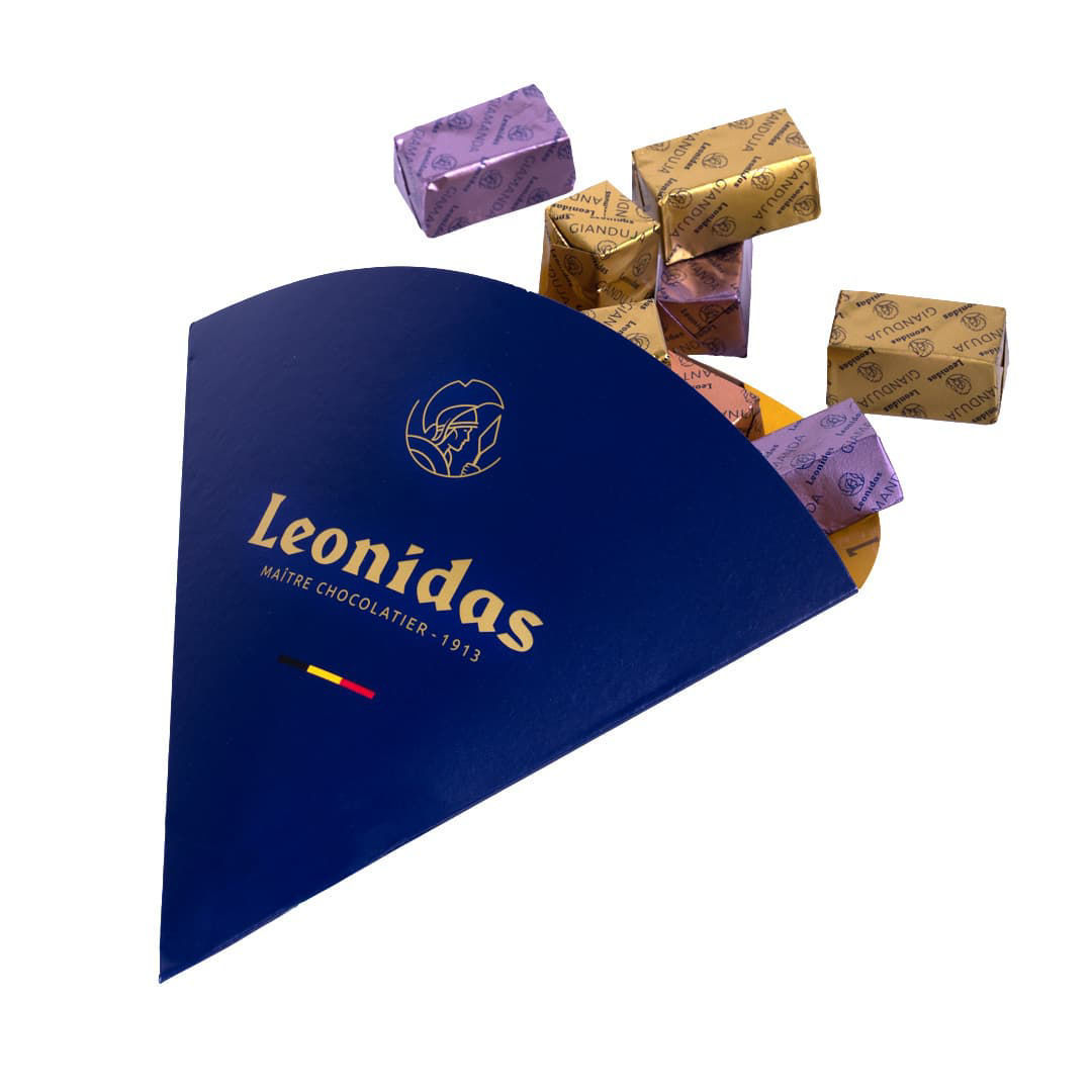 Κομψή, χρυσή κασετίνα πολυτελείας Leonidas με επιλογή τις κλασικές, φημισμένες γεύσεις πραλίνας φουντουκιού Gianduja, Giantina, Giamanda, με την άρτι αφιχθείσα, αλλά εξίσου επιτυχημένη γεύση πραλίνας Gianouga, θα ενθουσιάσει κάθε λάτρη και όχι μόνο της αυθεντικής βελγικής σοκολάτας! - Gianduja (σκέτη πραλίνα φουντουκιού)