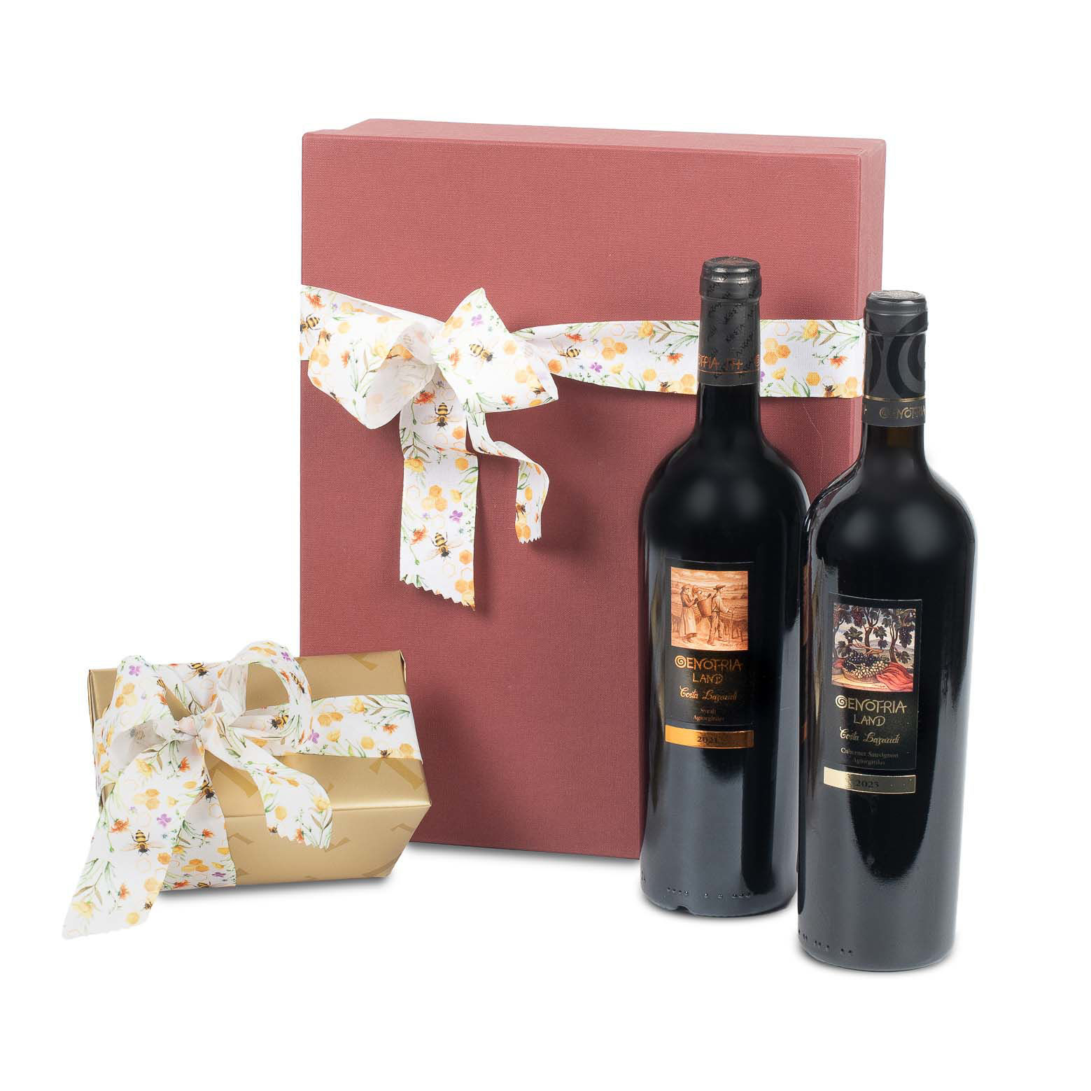 Χάρτινο κουτί με κρασιά Οινότρια Γη και σοκολατάκια Leonidas