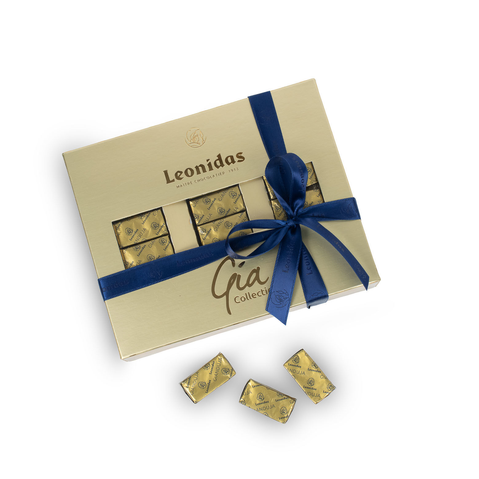 Χρυσό κουτί με 36 σοκολατάκια gianduja Leonidas