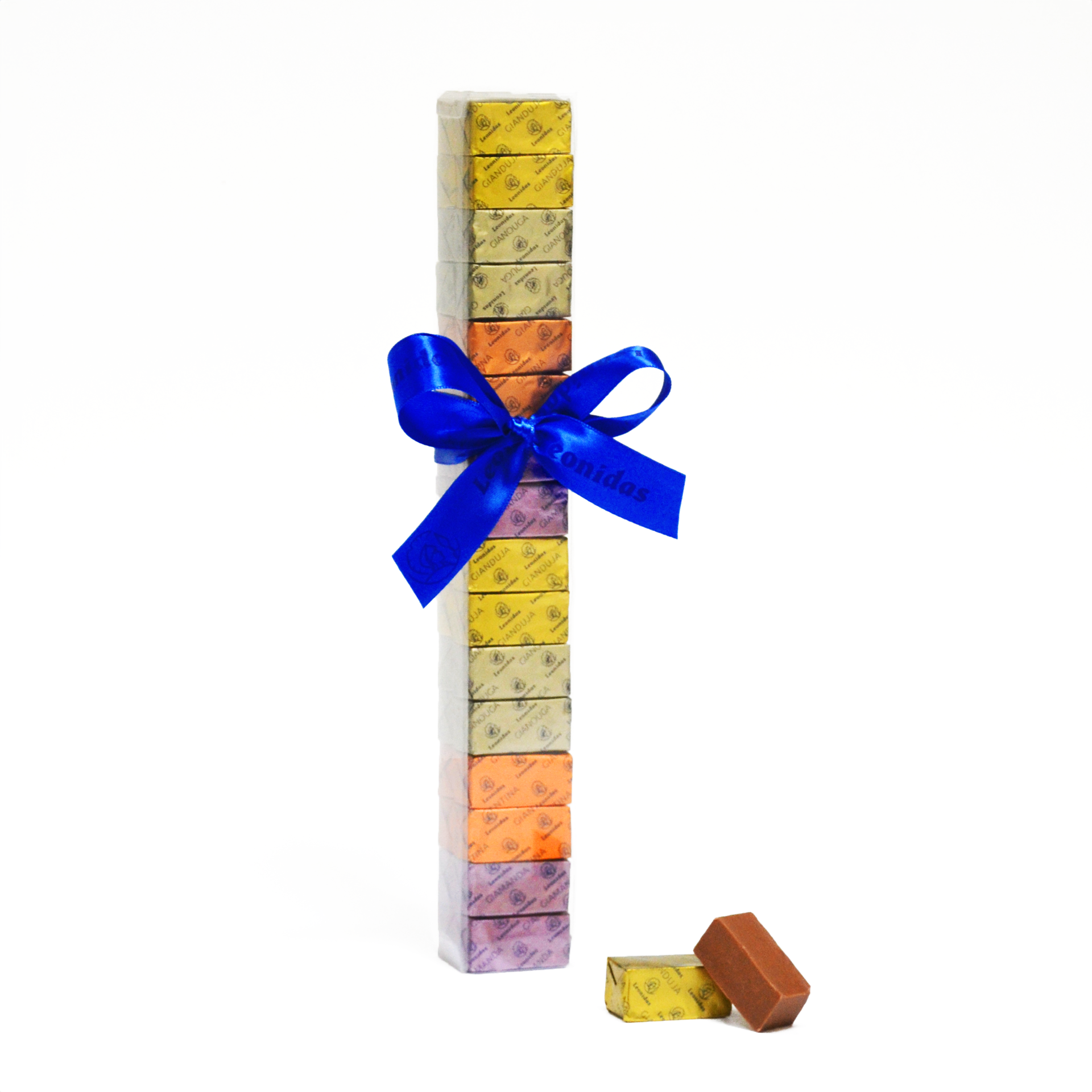 Χάρτινη συσκευασία που περιέχει 8 σοκολατένια μολύβια με σοκολάτα γάλακτος Leonidas 72 γρ. σε διάφορα χρώματα!