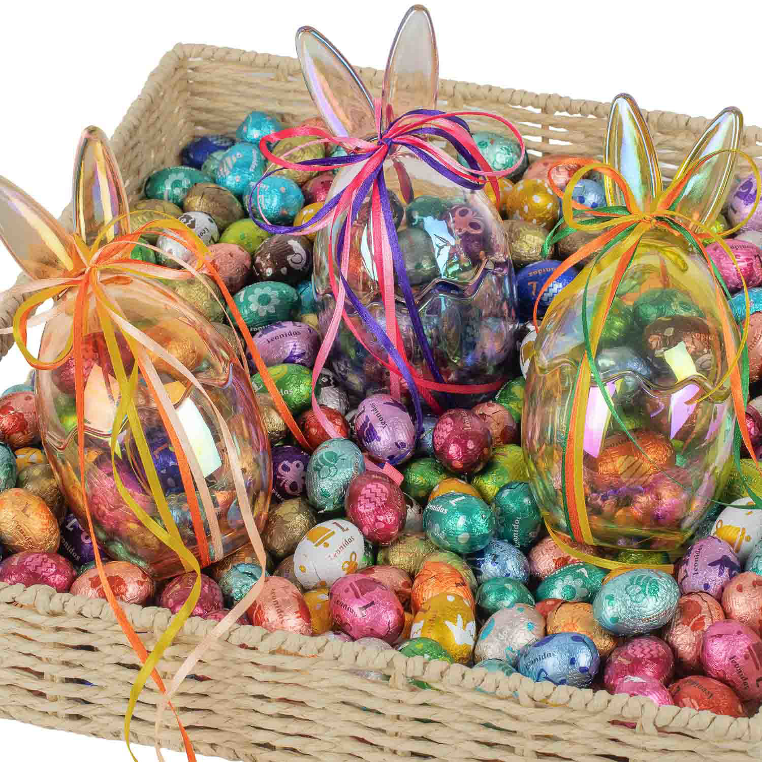 Γυάλινος λαγός με 16 σοκολατένια αυγουλάκια Leonidas