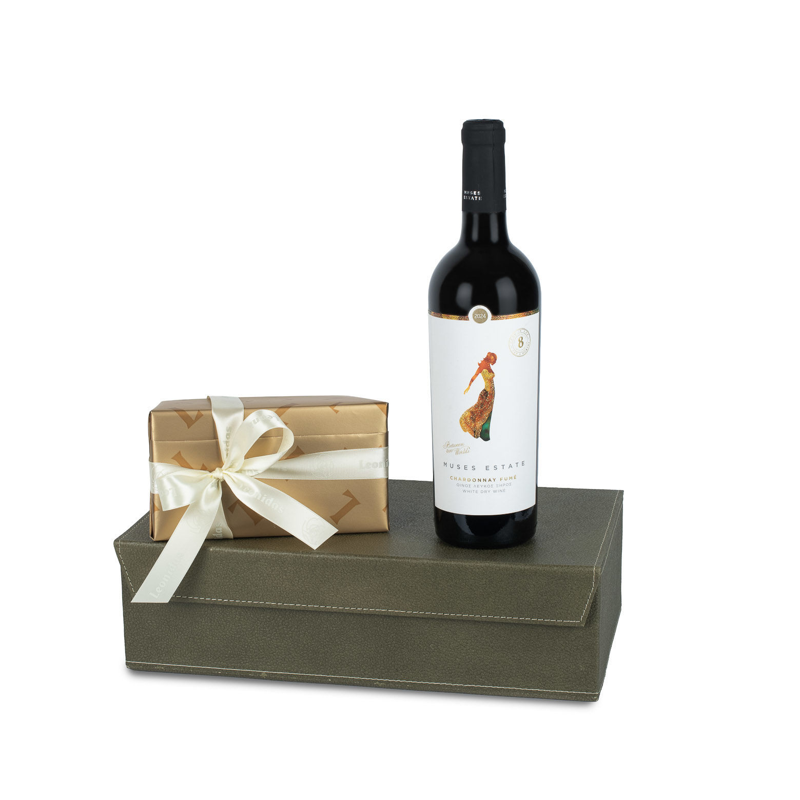 Κουτί με κρασί Muses Estate Chardonnay Fume και σοκολατάκια Leonidas