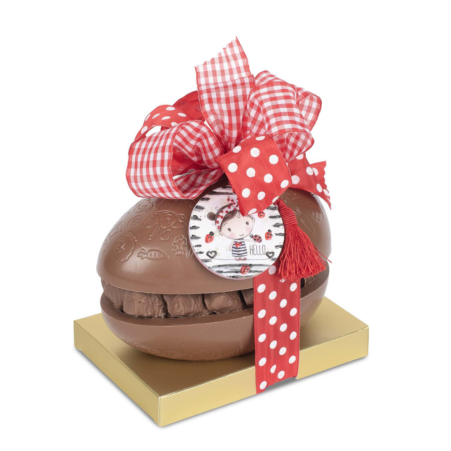 Σοκολατένιο αυγό γάλακτος με πραλίνες και διακόσμηση