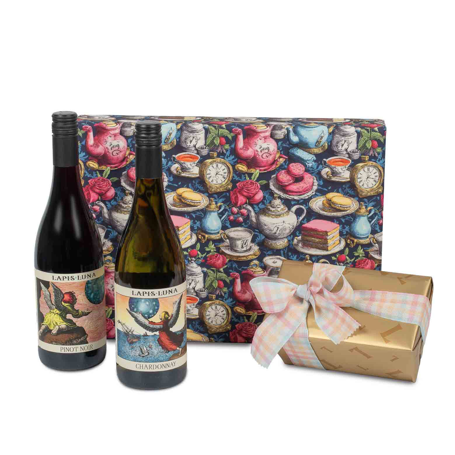 Υφασμάτινο κουτί με 2 κρασιά Καλιφόρνιας Lapis Luna και σοκολατάκια Leonidas